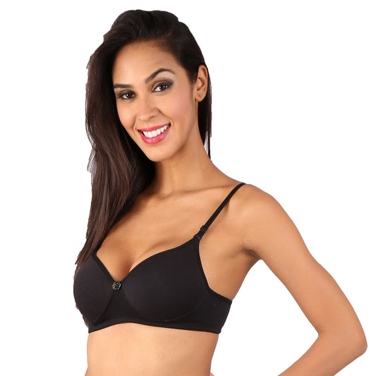 Bralux Womens Bra Non-Wired Bra, Padded T-Shirt Bra, B Cup Cotton Bra, Full Coverage Bra - Black, 30B - Liza